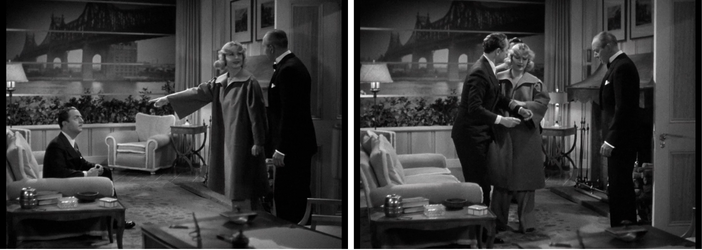 Ainsi, lorsque la femme travaille, son emploi apparait soit comme un détail de l’intrigue, soit comme un fardeau et surtout, cette occupation nouvellement gagnée ne lui laisse aucune chance de vivre un amour heureux et paisible. Moins de problèmes pour l’homme qui occupe généralement un emploi important mais dont il assume l’entière responsabilité, quitte à délaisser celle qu’il aime. Le meilleur exemple est sans nul doute Une fine mouche de John Conway. Cette screwball des premiers temps met en scène Warren Haggerty (Spencer Tracy), un rédacteur en chef qui n’hésite pas à pousser sa fiancée (Jean Harlow) dans les bras de Bill (William Powell), un ami à l’honnêteté discutable et ce, dans le seul but de compromettre une riche héritière (Myrna Loy).